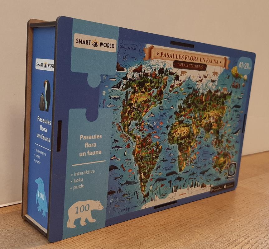 Fiziskā karte pasaules puslodes. Interaktīva koka puzle