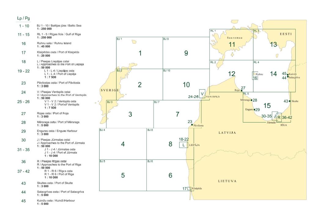 - It consists of 45 navigational charts in scales 1:3'000 – 1:250'000