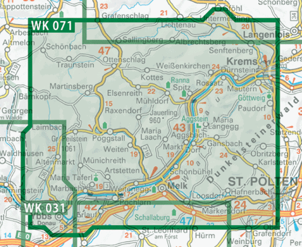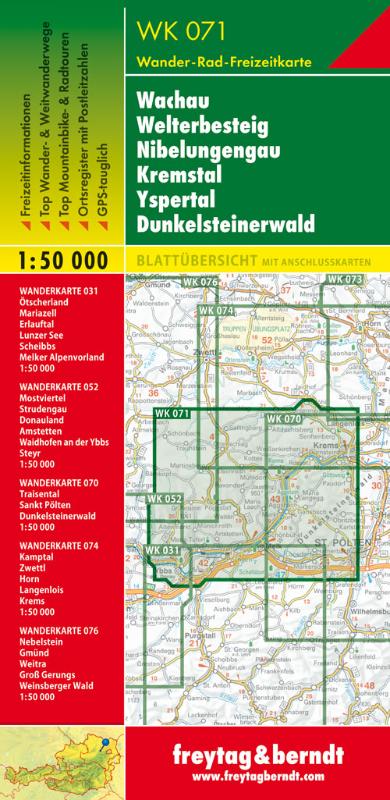 (WK 071) Wachau, Welterbesteig, Nibelungengau, Kremstal, Yspertal, Dunkelsteinerwald, Wanderkarte 1:50'000
