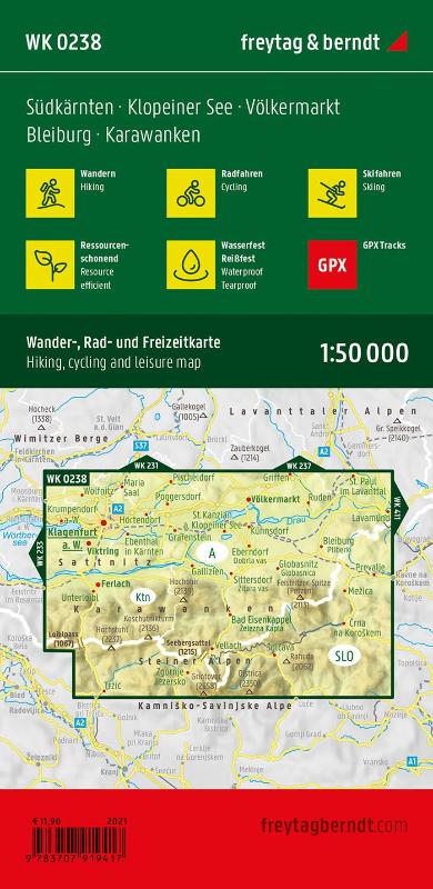(WK 0238) Südkärnten, Klopeiner See, Völkermarkt, Bleiburg, Karawanken, Wanderkarte 1:50'000