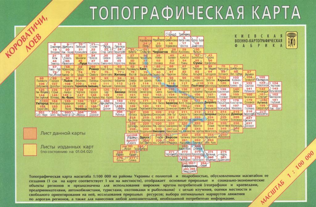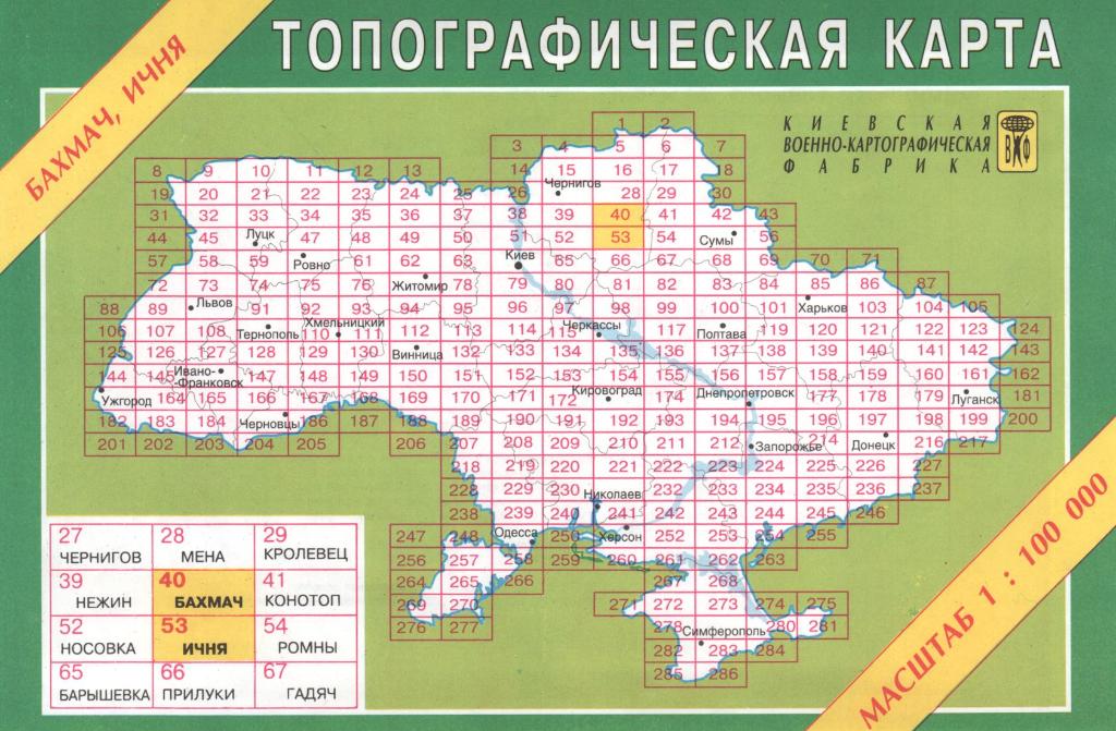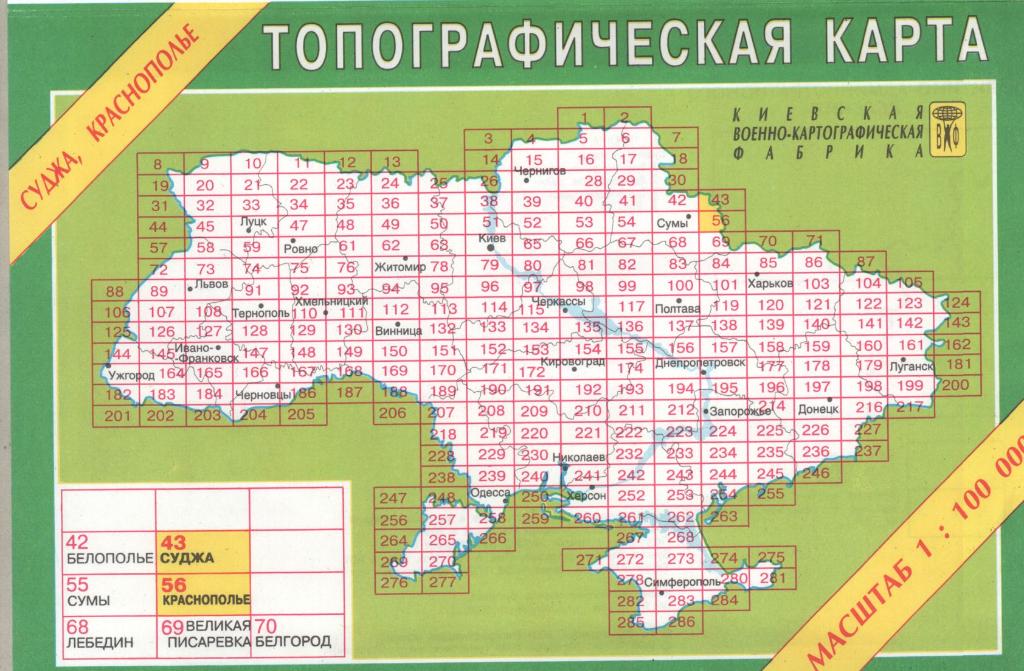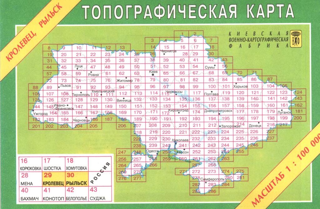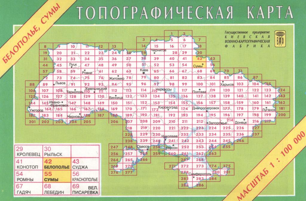 Ukrainas topogrāfiskās kartes 1:100'000 (55) Page Nr. 1 no 3