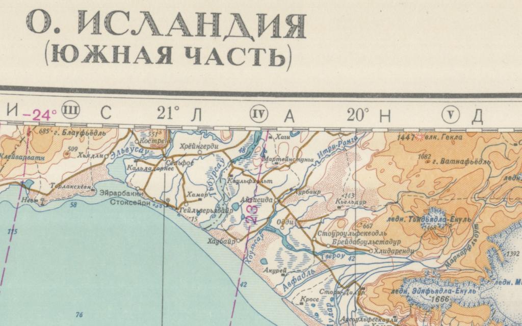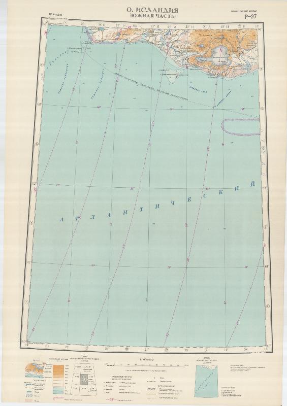 - Reprinted Russian Soviet Military Topographic Map – P-27 ICELAND (SOUTHERN PART) (Iceland), 1:1'000'000