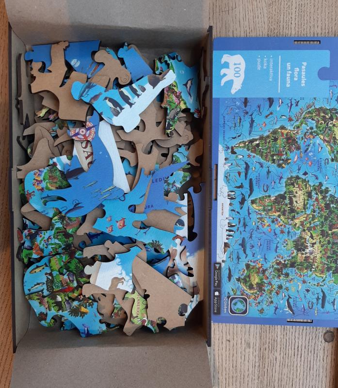 - World map wooden puzzle with animals and plants