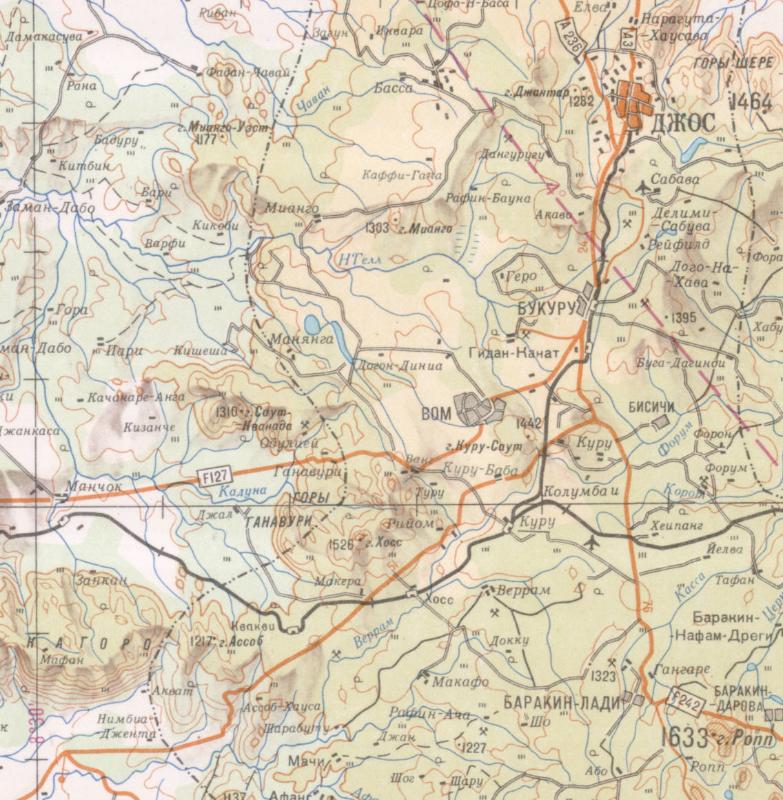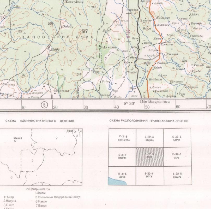 - Reprinted Russian Soviet Military Topographic Map C-32-В (C-32-3) JOS (Nigeria), 1:500'000