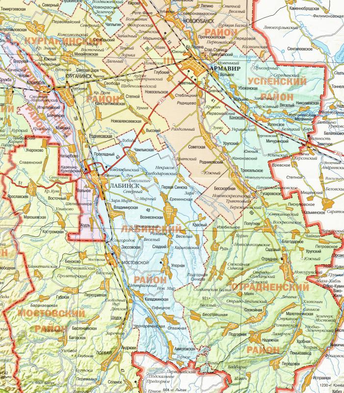 - Krasnodaras novada un Adigejas Republikas karte mērogā 1:600'000 ar apdzīvoto vietu rādītāju