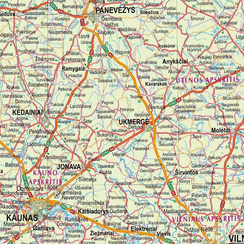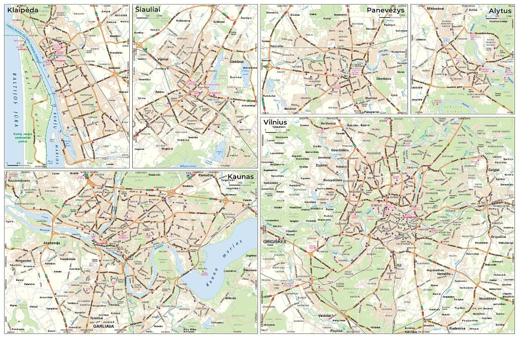 - Vilnius (scale 1:100'000), Kaunas (scale 1:85'000), Klaipeda, Sauliai, Panevezys, Alytus (scale 1:75'000)