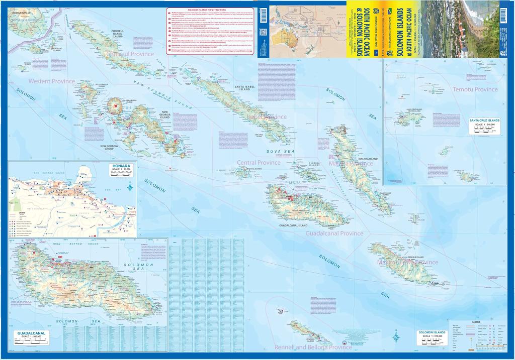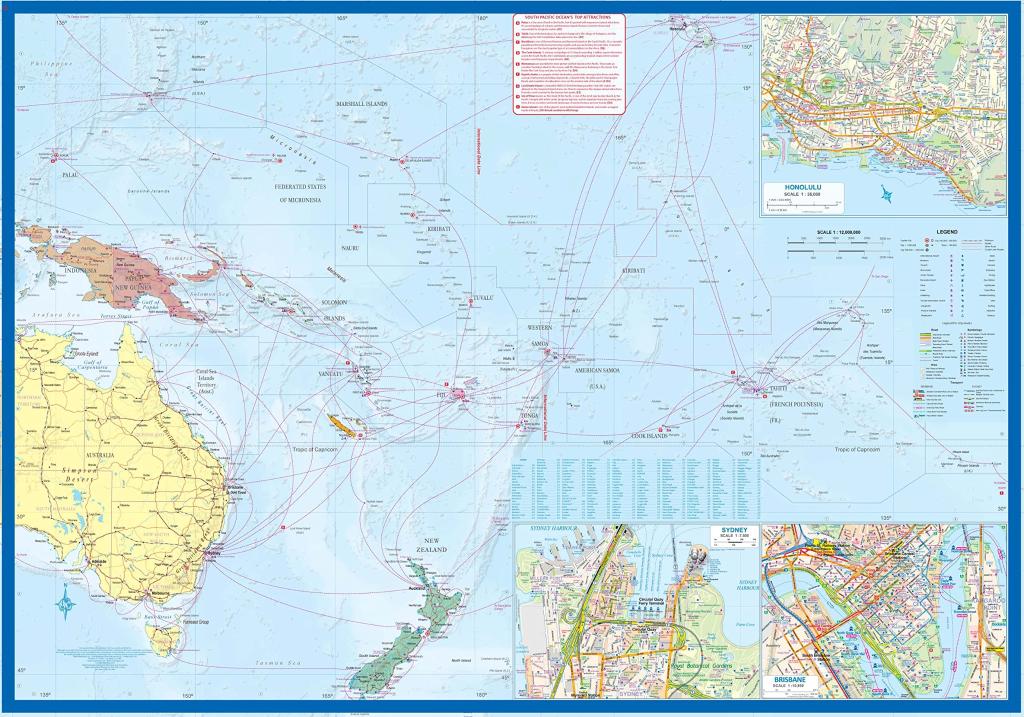 • City maps: Honiara in scale 1:13'000, Sydney centre in scale 1:7'500, Brisbane centre in scale 1:10'800, Honolulu in scale 1:35'000