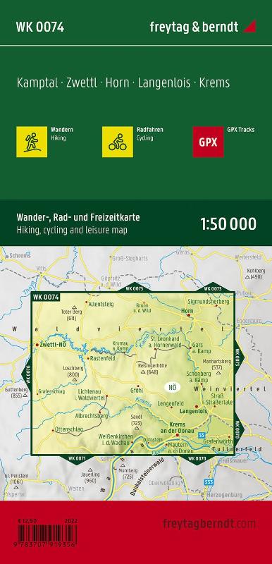 (WK 0074) Kamptal, Zwettl, Horn, Langenlois, Krems, Wanderkarte 1:50'000