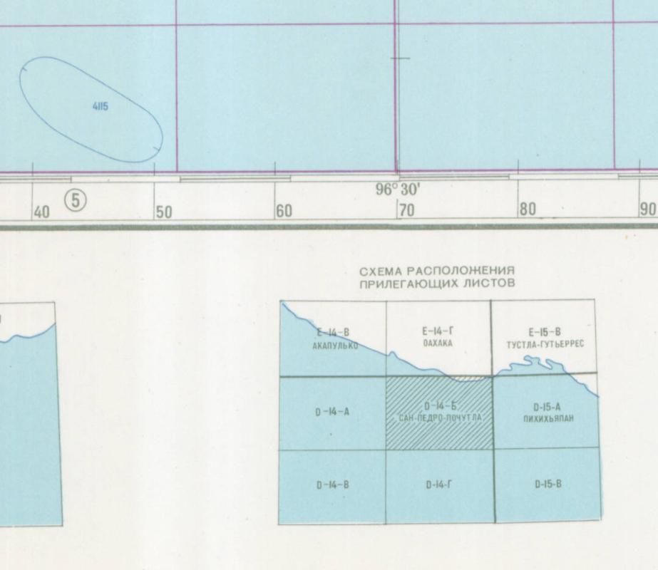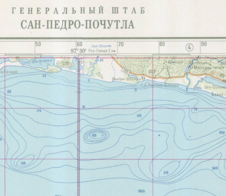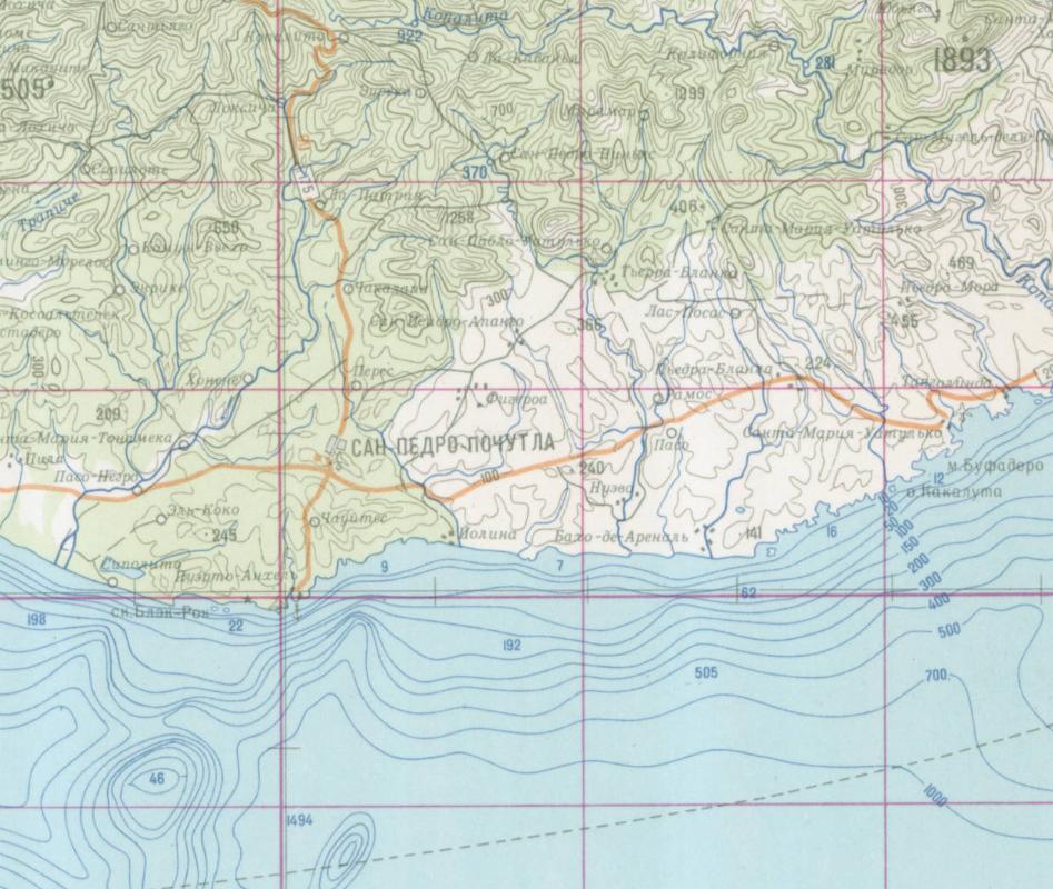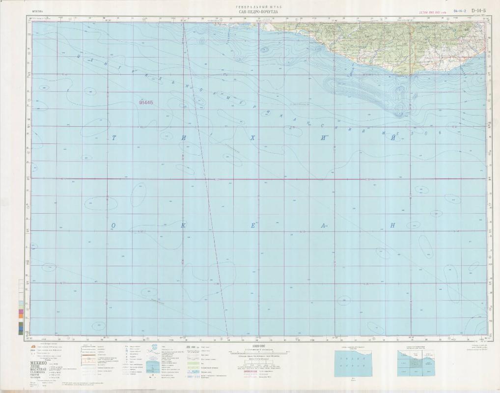 - PSRS Ģenerālštāba militārā topogrāfiskā karte D-14-Б (D-14-2) SAN PEDRO POČUTLA (Meksika) 1:500'000